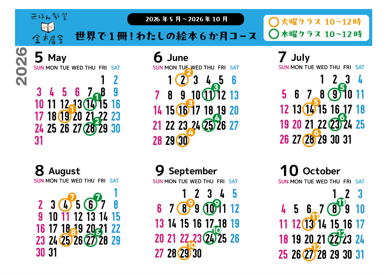 世界で1冊!わたしの絵本6か月コース 火曜クラス・木曜クラス(2026年5月〜2026年10月)